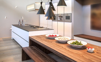 maximale levensduur zijn de belangrijkste vereisten van een coating voor gebruik in de keuken Beoogde. Scala aan effecten en kleuren ICA Group maakt het mogelijk om te kiezen uit oneindig veel